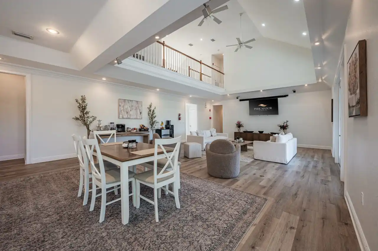 Park Manor Recovery offers support and treatment for clients with a variety of substance use disorders and underlying mental health issues. Their small personalized program tailors services for each client, whether in the 30- to 90-day residential program or the 10-day accelerated program for executives. Their clinical director works intimately with each client on a daily basis, and staff ensure client satisfaction and comfort at all times in their 7,000-square-foot home in the heart of Florida. Navigate Recovery with a Structured 3-Phase Approach Park Manor’s 3-phase approach begins with an orientation week to develop personalized treatment plans, address co-occurring mental health disorders, and introduce healthy living practices alongside Step One of Alcoholics Anonymous/Narcotics Anonymous (AA/NA). In the second phase, clients engage in therapy, develop coping skills, and deepen their understanding of addiction as a manageable disease while advancing to Step Two. The final phase focuses on life after treatment, including crafting individualized aftercare plans and starting Step Three to support a smooth transition to long-term recovery. Maximize Healing with Therapy & Aftercare Park Manor’s residential program emphasizes cognitive behavioral therapy (CBT), offering 8-10 hours of 1:1 and group sessions per week to support behavioral and lifestyle changes. Clients benefit from a blend of holistic therapies, including group yoga, group fitness, and balanced nutrition. Comprehensive care extends beyond primary treatment through weekly remote aftercare sessions led by their clinicians. Unwind in a Waterfront Estate Park Manor’s estate provides ample space to unwind on the wraparound porch, alongside the small lake, or inside the 7,000-square-foot home. The well-appointed residence has a pool, library, media room, and gym and yoga space. Clients stay in large private bedrooms with en suite bathrooms and desks. A gourmet chef serves all meals around the dining table to encourage a sense of family. Clients also benefit from proximity to a state park with miles of hiking trails. Phones and laptops are permitted to help clients stay connected to work and family.