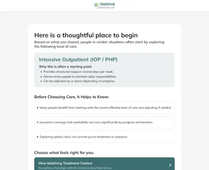 Our platform is designed to guide individuals and families step by step as they move from learning about recovery to connecting with trusted care. TruPaths combines education, guided assessment, and AI navigation to help families explore treatment options with greater clarity.